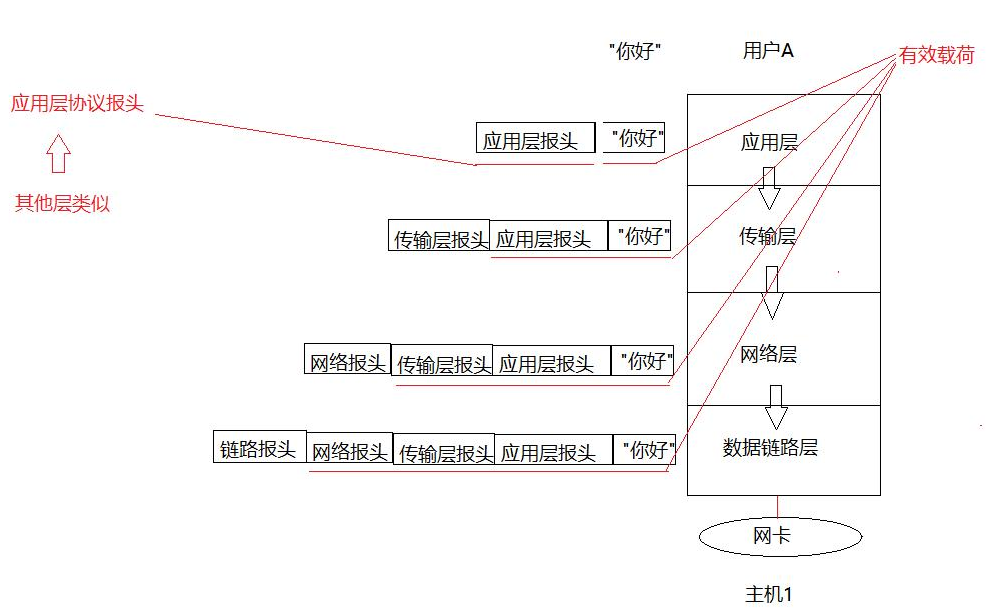 应用层数据通过协议栈发到网络上时,每层协议都要加上一个数据首部,称为封装。