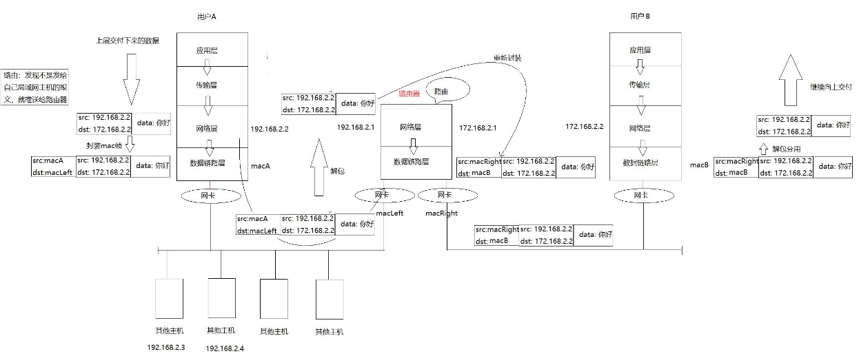 结合封装和解包,体现路由器解包和重新封装的特点:
