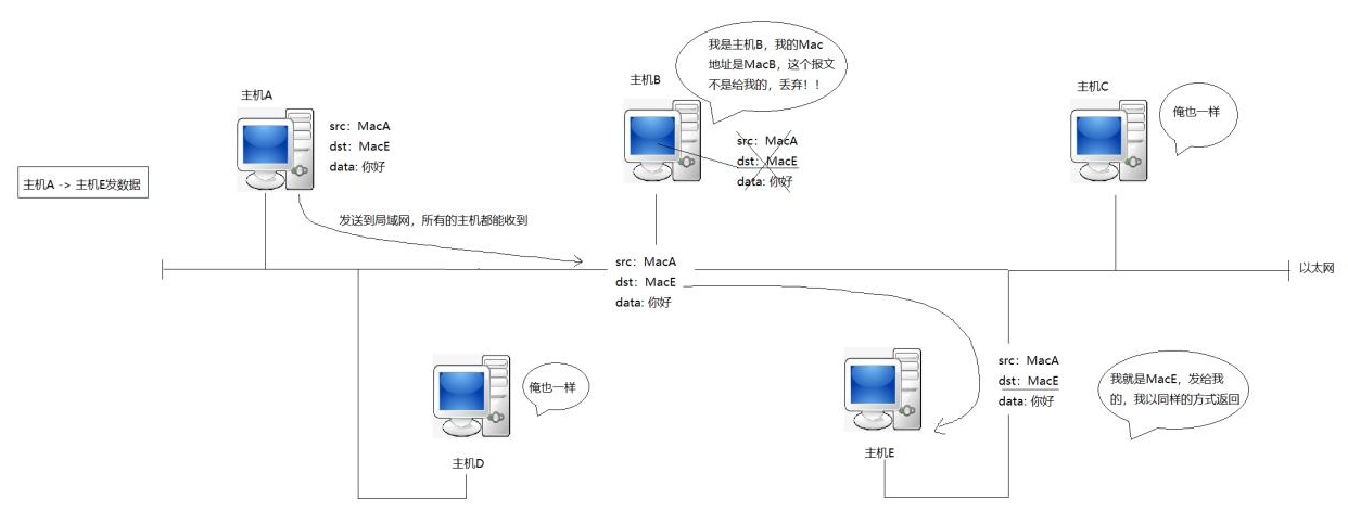 以太网中,任何时刻,只允许一台机器向网络中发送数据;
