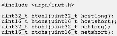 为使网络程序具有可移植性,使同样的代码在大端和小端计算机上编译后都能正常运行,可以调用以下库函数做网络字节序和主机字节序的转换。