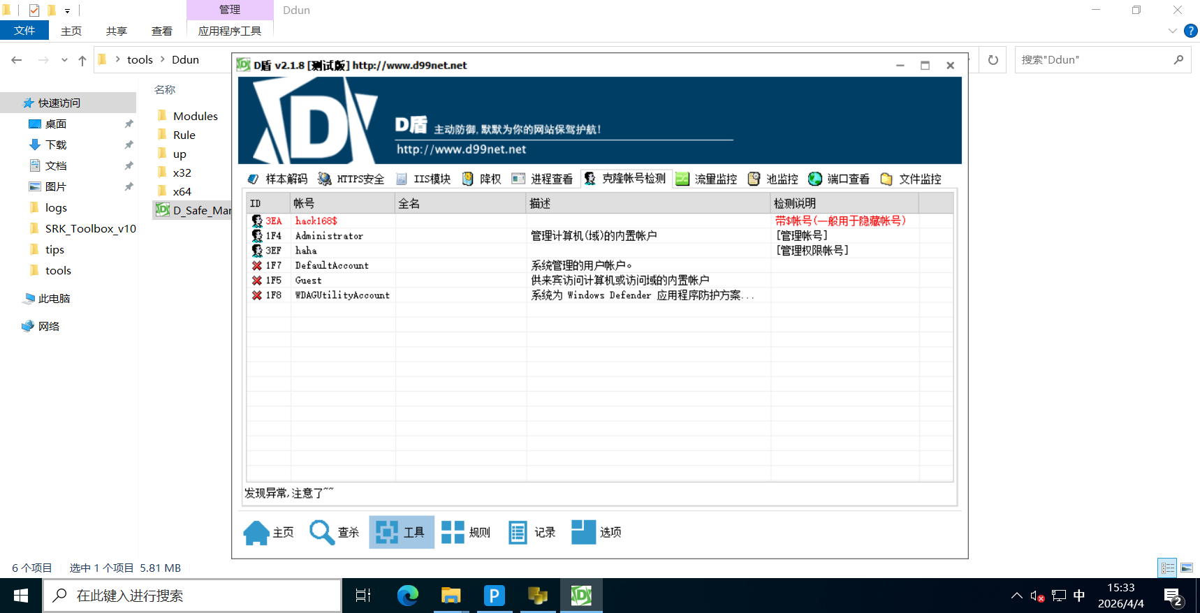 用D盾可以直接检测,其实系统杀毒软件也可以检测出来。