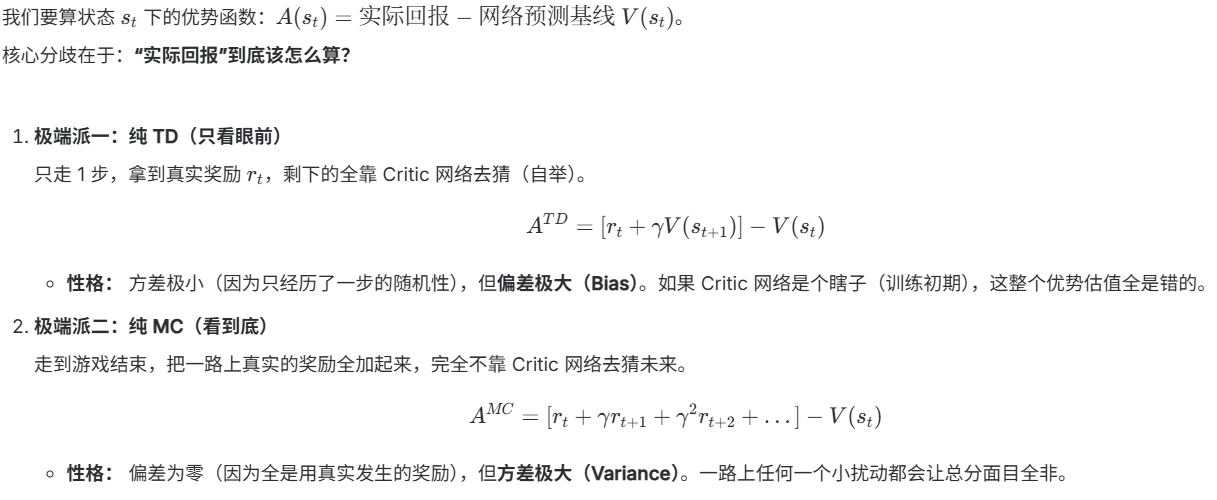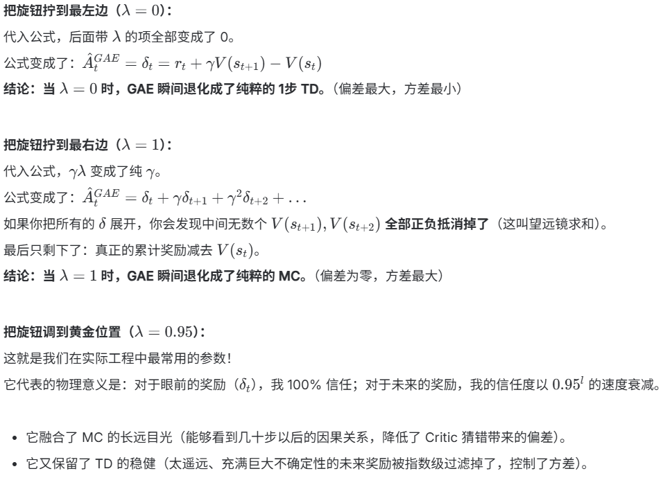 GAE是MC和TD的中和(更加趋近于MC,TD增加了一些平滑效果)