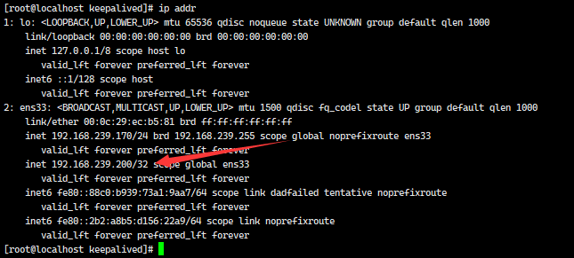 - 通过使用以下命令查看主服务器是否存在VIP