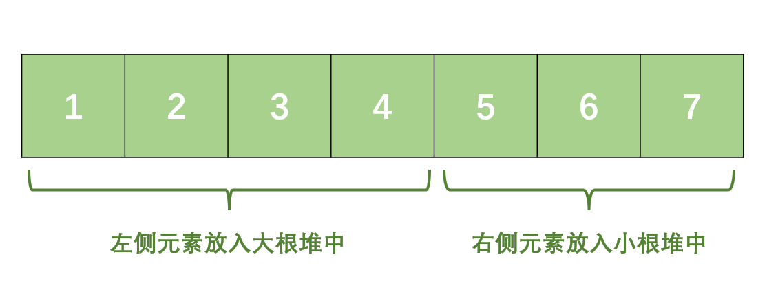 //分类讨论:根据两个堆的大小关系,决定数字放哪里