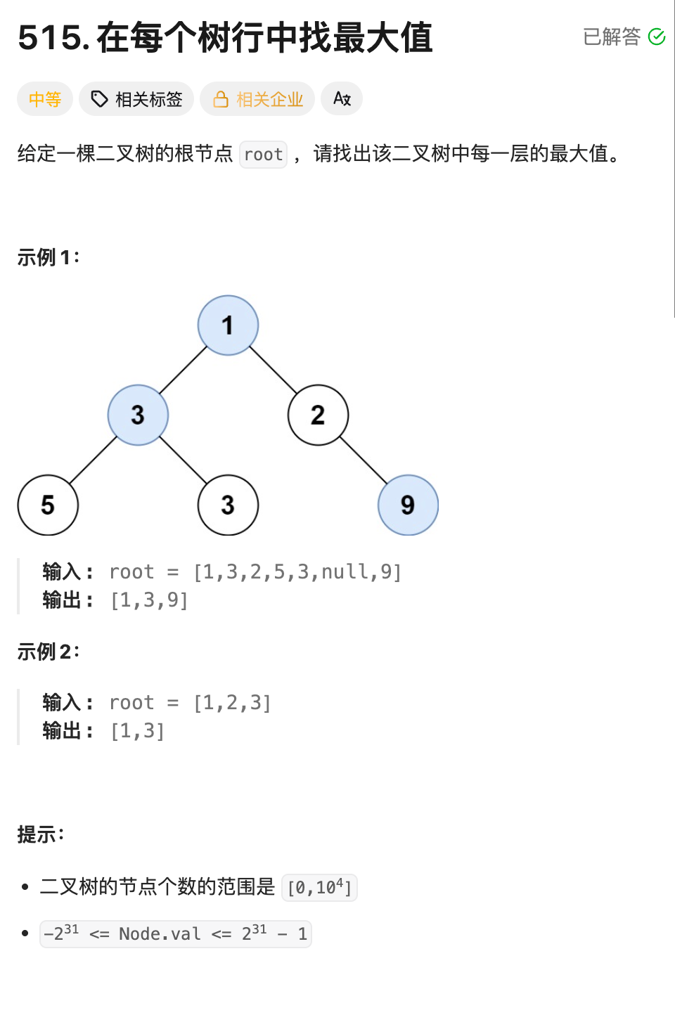 - 10.在每个树行中找最大值--队列+宽搜(BFS)(OJ题)