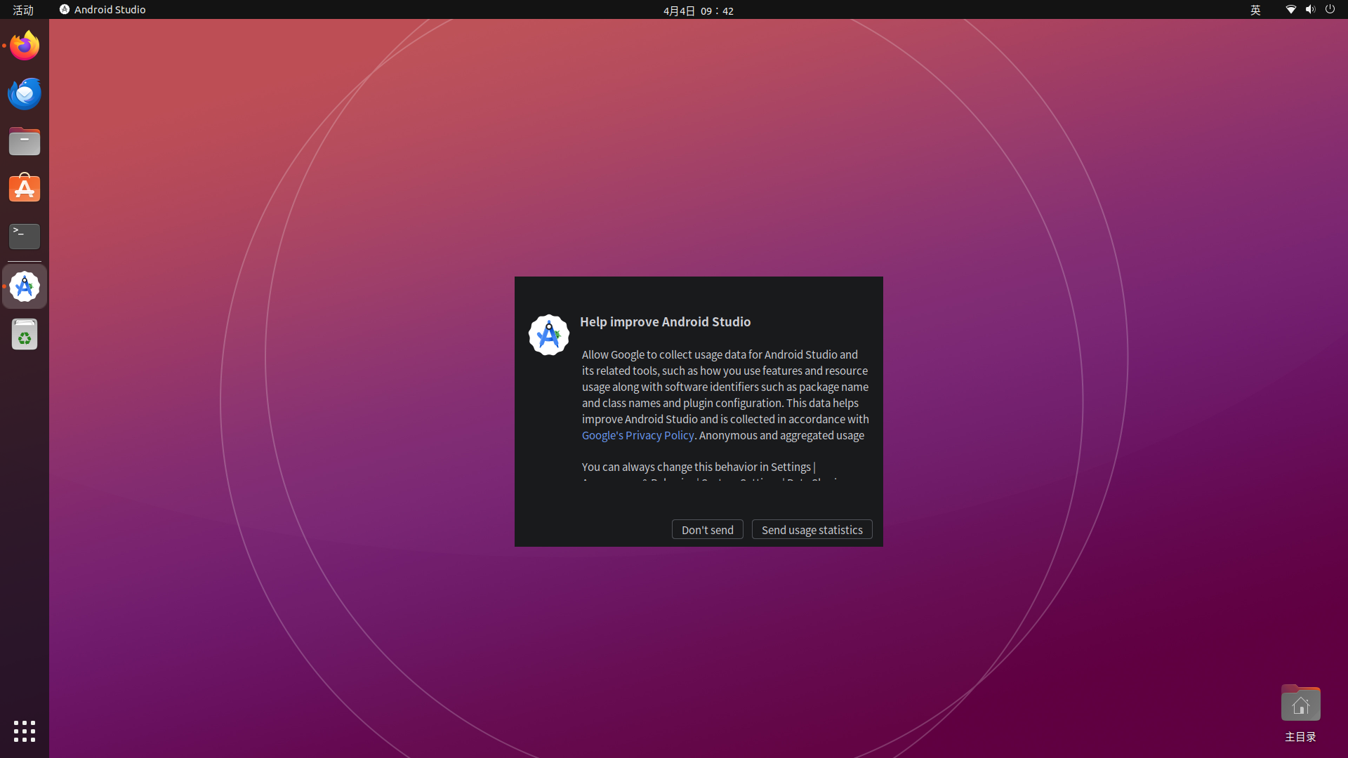 首次启动后会弹出设置向导,首先是易用性提示,我们连不通谷歌网络,直接点"Don't send":