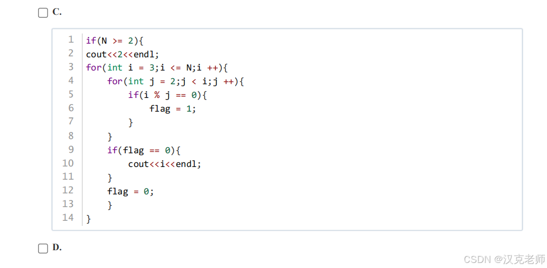 其实D的条件也有欠缺,本题要求至少都要有一只,应该都从1开始循环判断,更加合理。