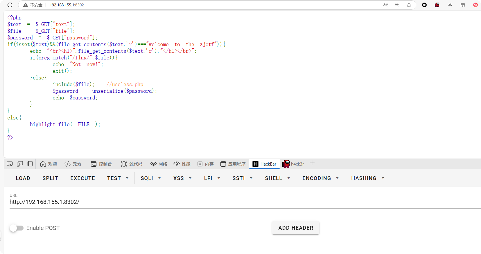 结果如下,成功h1高亮显示welcome to the zjctf。