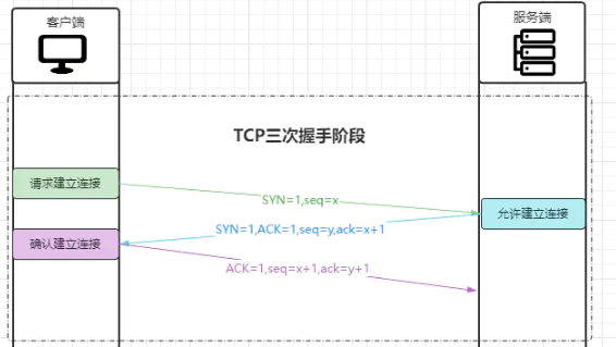 SYN+ACK,回复ACK,告知服务器「我知道了(ACK=1),我确认你的起点是Y,但是下次序列号你得从Y+1开始」,双方进入ESTABLISHED状态,连接正式建立。