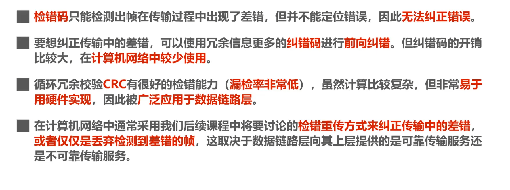 接受方主机收到帧后,通过检错码和检错算法,就可以判断出帧在传输过程中是否出现了误码