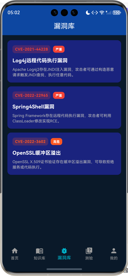 网络安全领域涵盖广泛,从底层的密码学原理到上层的应用安全,从技术层面的漏洞挖掘到管理层面的合规建设,都需要系统学习。本应用通过分类清晰的知识组织方式,配合真实漏洞案例分析和互动测验,让用户能够在理论与实践之间建立联系,真正掌握安全技能。