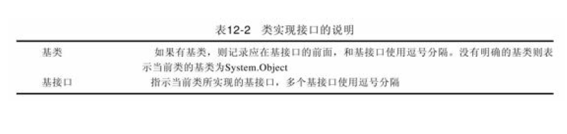 ❑接口可以从一个或多个基接口继承,一个类或结构也可以实现多个接口,如图12-1所示;