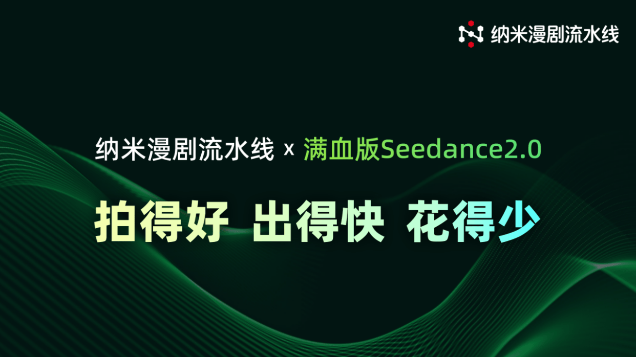 国内首个工业级AI漫剧智能体生产平台 "纳米漫剧流水线" 宣布,已完成与满血版Seedance 2.0视频生成模型的全量接入与深度适配,将陆续落地 "多参生视频模式" 与 "动态宫格生视频模式" 两大专属创作功能。创作者可通过平台直接调用满血版Seedance 2.0 的顶尖生成能力,无需排队即可启动创作,一站式破解 AI 短剧行业长期存在的创作难题。