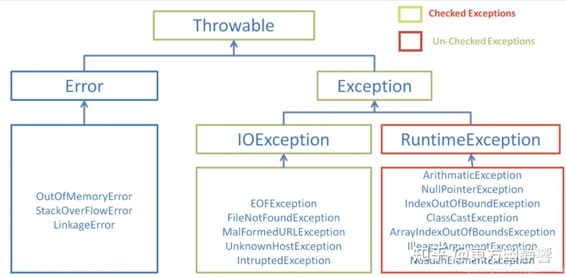 - java 为系统异常和普通异常提供了不同的解决方案,编译器强制普通异常必须 try..catch 处理或用 throws 声明继续抛给上层调用方法处理,所以普通异常也称为 checked 异常 ,而系统异常可以处理也可以不处理,所以,编译器不强制用 try..catch 处理或用 throws 声明,所以系统异常也称为 unchecked 异常。