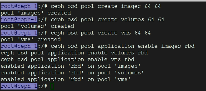 ceph osd pool create vms 64 64