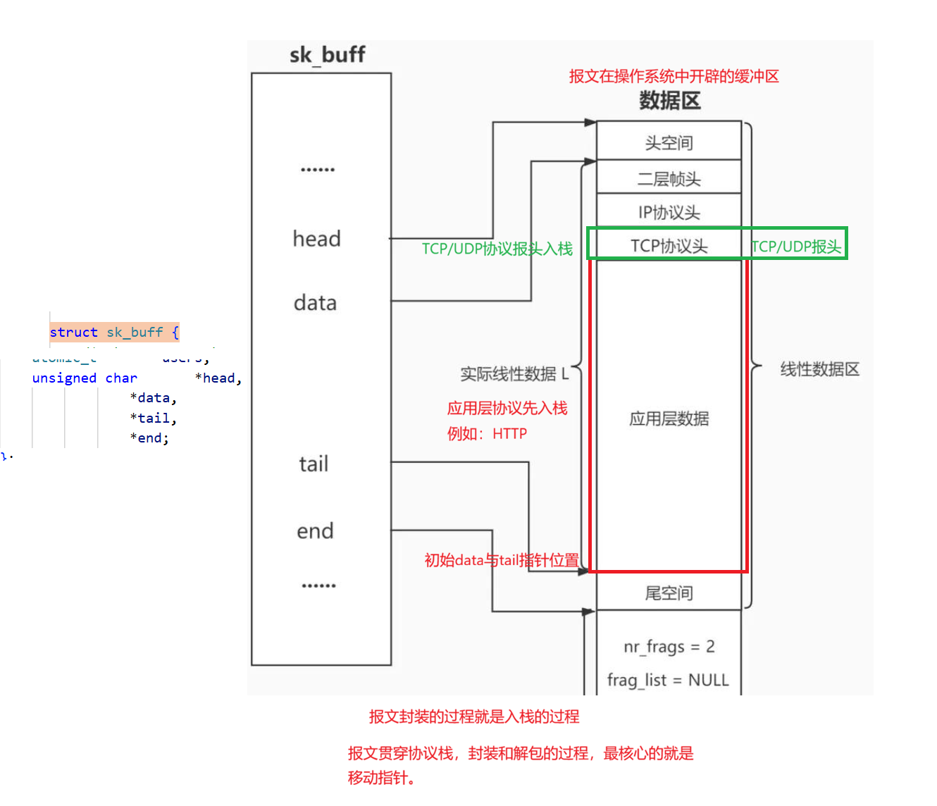 如何理解一个报文:在内核中,struct sk_buff,任何一个报文在操作系统内部都会开辟一个缓冲区。