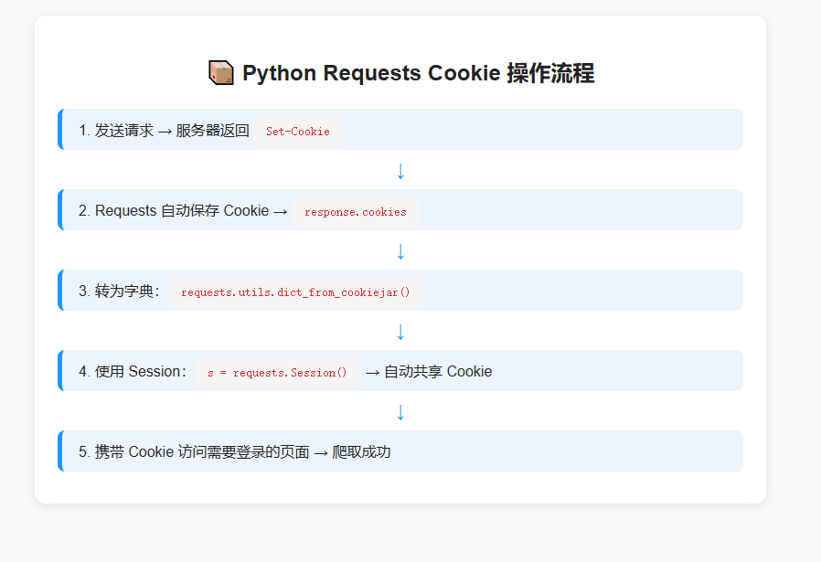 requests三种 Cookie 用法:自动保存、手动传参、CookieJar 转换- Session 对象是爬虫维持连续会话的最佳方案
