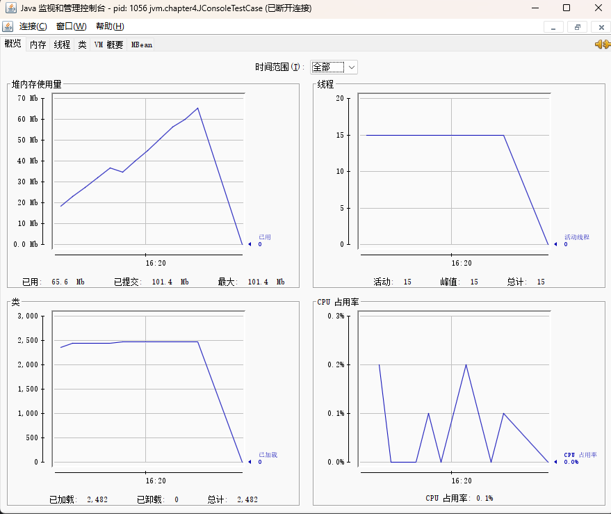 连接到本地或远程JVM,实时观察内存曲线、GC活动