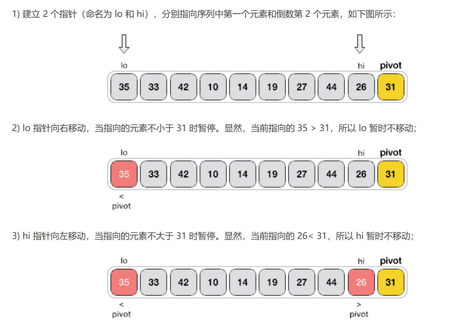 适用:目前内部排序中平均性能最高的算法。常考优化方法:随机取基准、三数取中法。