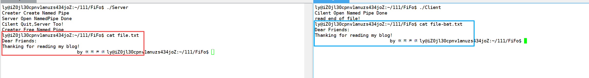 我们需要做的是,让客户端将file.txt文件通过管道发送给服务端,在服务端创建一个file-bat.txt文件,并将从管道获取到的数据写入到file-bat.txt文件当中,这样子就实现了file.txt文件的拷贝.