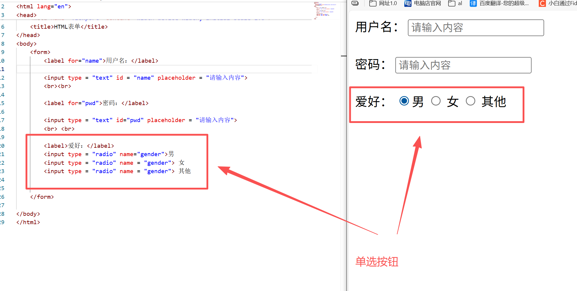<input type = "radio" name = "gender"> 其他