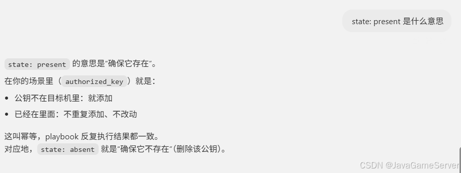 可见ansible安装和使用都非常简单,安装就是:输入,不存在则自动安装。