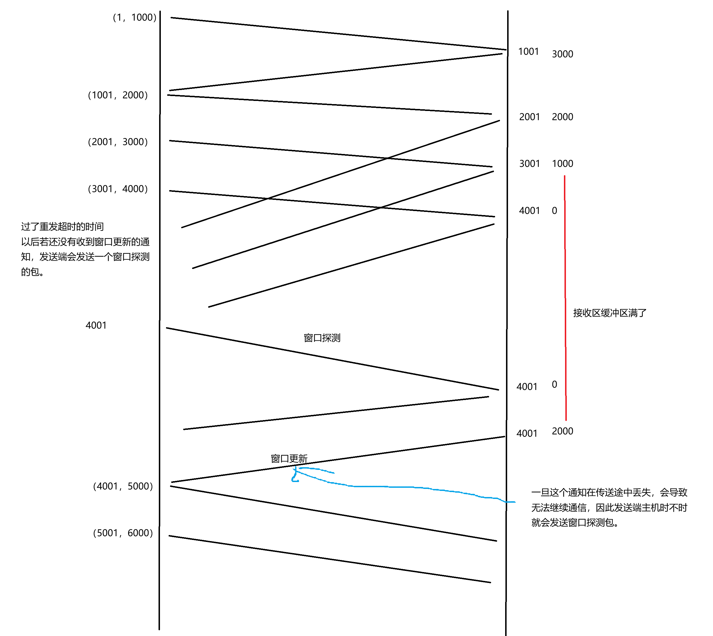- 根因:接收方应用层读取数据速度远低于 TCP 接收速度,接收缓冲区被占满,内核通知发送方暂停发送。典型场景是应用进程卡死、CPU/IO 阻塞,无法调用