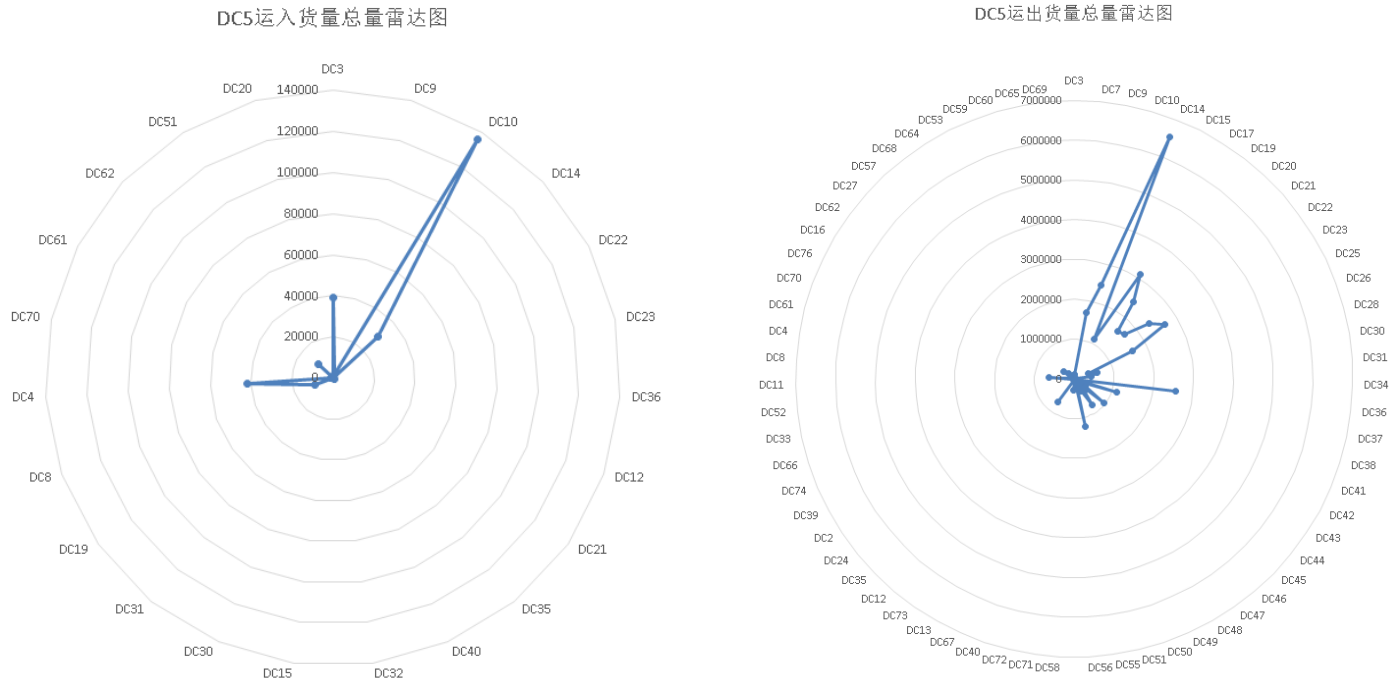 图6.1 运入和运出DC5的总货量雷达图