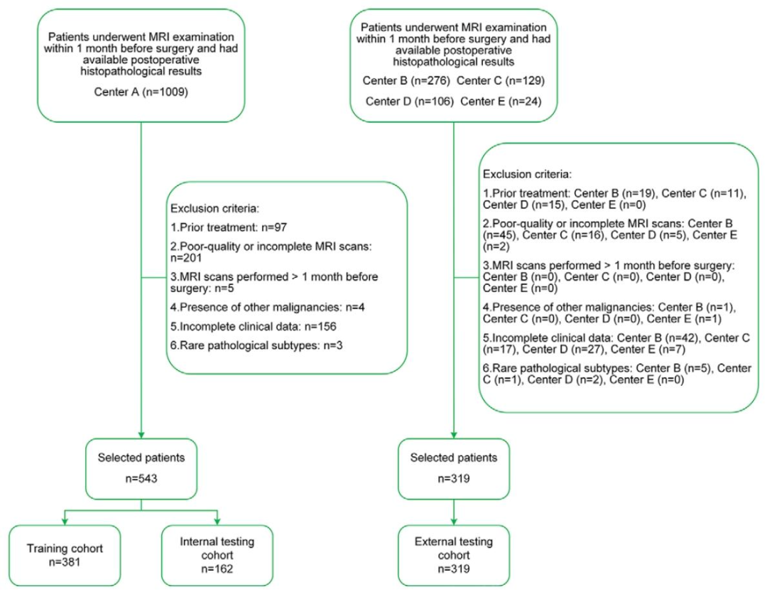 影像:多中心多参数MRI(T2WI、DWI、增强T1WI)