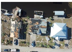 最常见的方式是将灾后图像中受损区域的检测视为分割任务,即为图像中每个像素分配类别标签。语义分割是通用遥感图像领域研究较为成熟的任务,已有许多可用数据集 [22]--[24]。与通用语义分割数据集不同,灾害检测数据集以灾害场景图像为来源,并提供受影响区域更为详细的标注。RescueNet [5] 提供了飓风迈克尔过后拍摄的详细灾后图像数据集,聚焦于语义分割任务,包含涵盖细粒度建筑物损毁等级、道路、水体和植被等各类别的完整像素级标注。ISBDA [20] 数据集提供了来自社交媒体用户生成的无人机航拍视频中的实例级建筑物损毁掩码,专注于定量模型评估,为灾后场景建筑物损毁评估中航拍视频分析的应用提供了新视角。