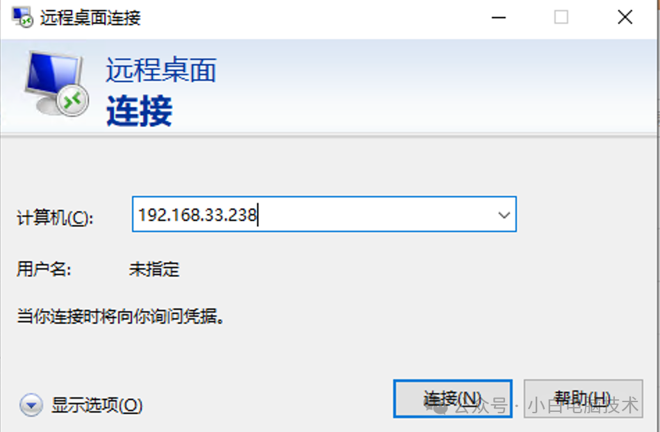 如果出现【Windows找不到文件'mstsc'。】则移步到文末【 推荐阅读】找解决方案。