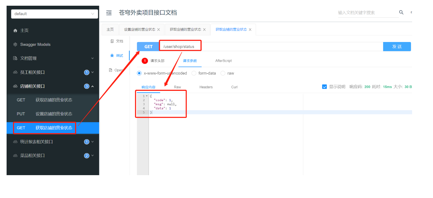 还有请求参数 和返回的数据