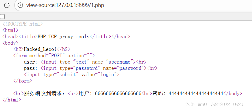 修改后重新运行脚本。在网页里输入 admin 登录,页面打印出来的接收结果将变成 hacker因为流量在半路被你写的代码"劫持并修改"了。