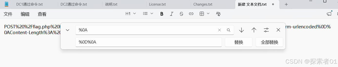 对第一次编码的换行符进行处理:复制内容,把%0A改成%0D%0A;
