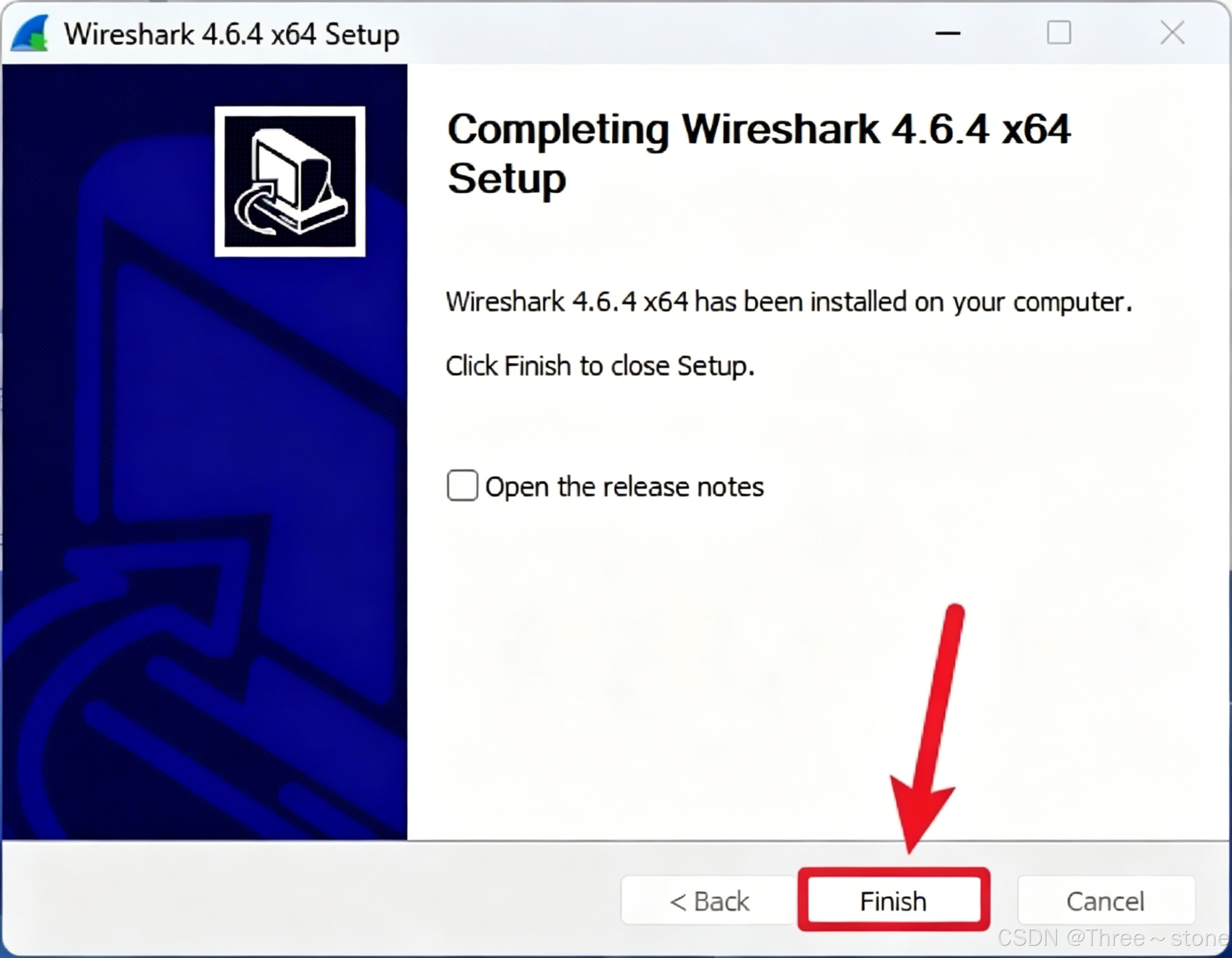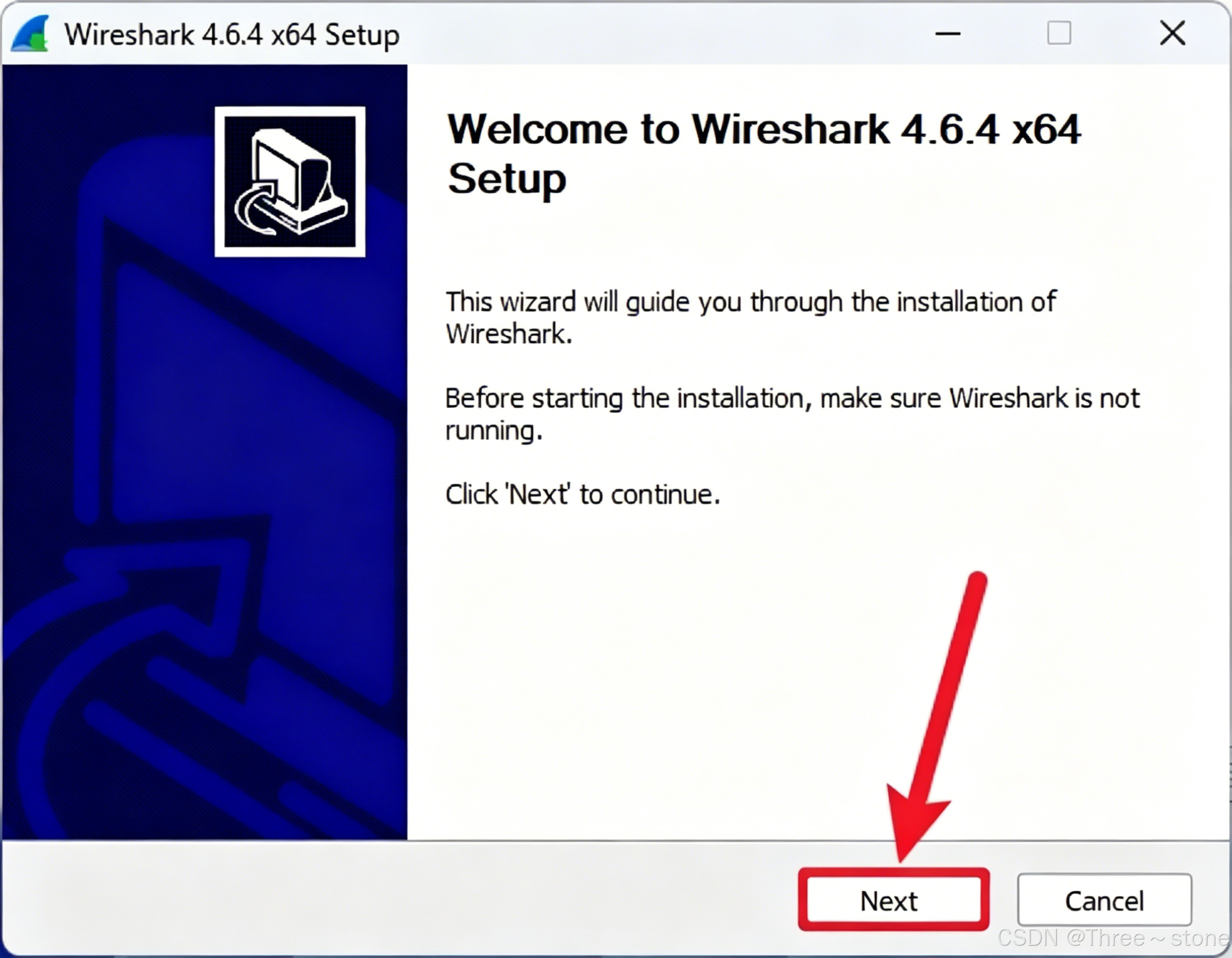 请按照以下步骤完成 Wireshark 4.6.4 的安装: