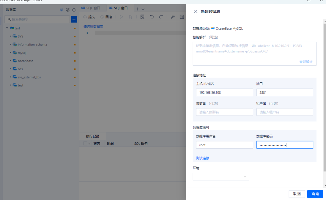 默认数据库:oceanbase