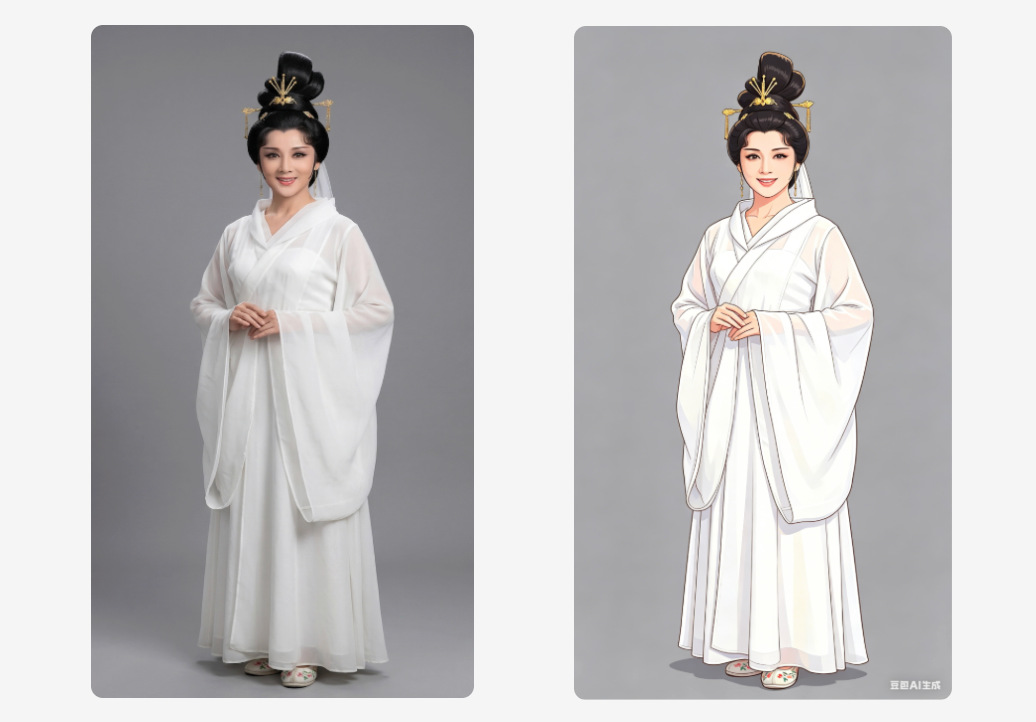 用左侧的真人图,使用豆包生成右侧的全彩插画。最终实测小云雀上传成功