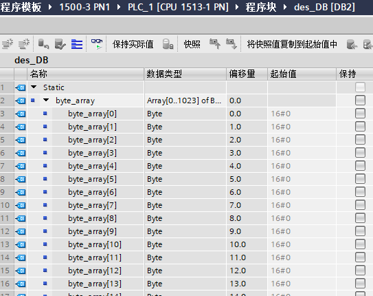 上述过程是可逆的,就是说,可以把一个Array of bytes格式的DB块的内容复制到一个与src_DB数据类型相同的DB块中,还原出原有数据。而这,正是网络通信所干的事情:decode和encode。