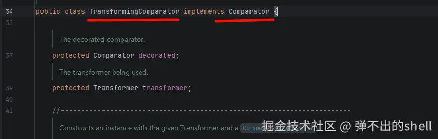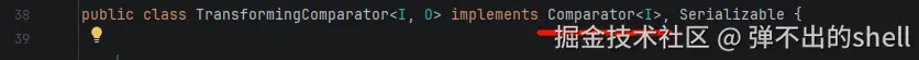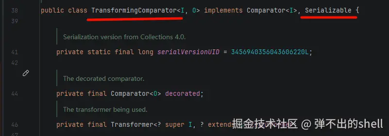 任何类都可以被实例化(new),但只有实现了 Serializable 接口的类才能被序列化成字节流。 3.2.1 的 TransformingComparator 没有这个接口,序列化时直接抛异常: