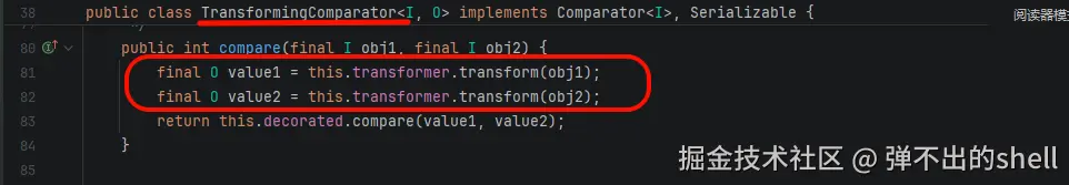 TransformingComparator.compare()把比较操作转换成 transform 调用 - 执行 :