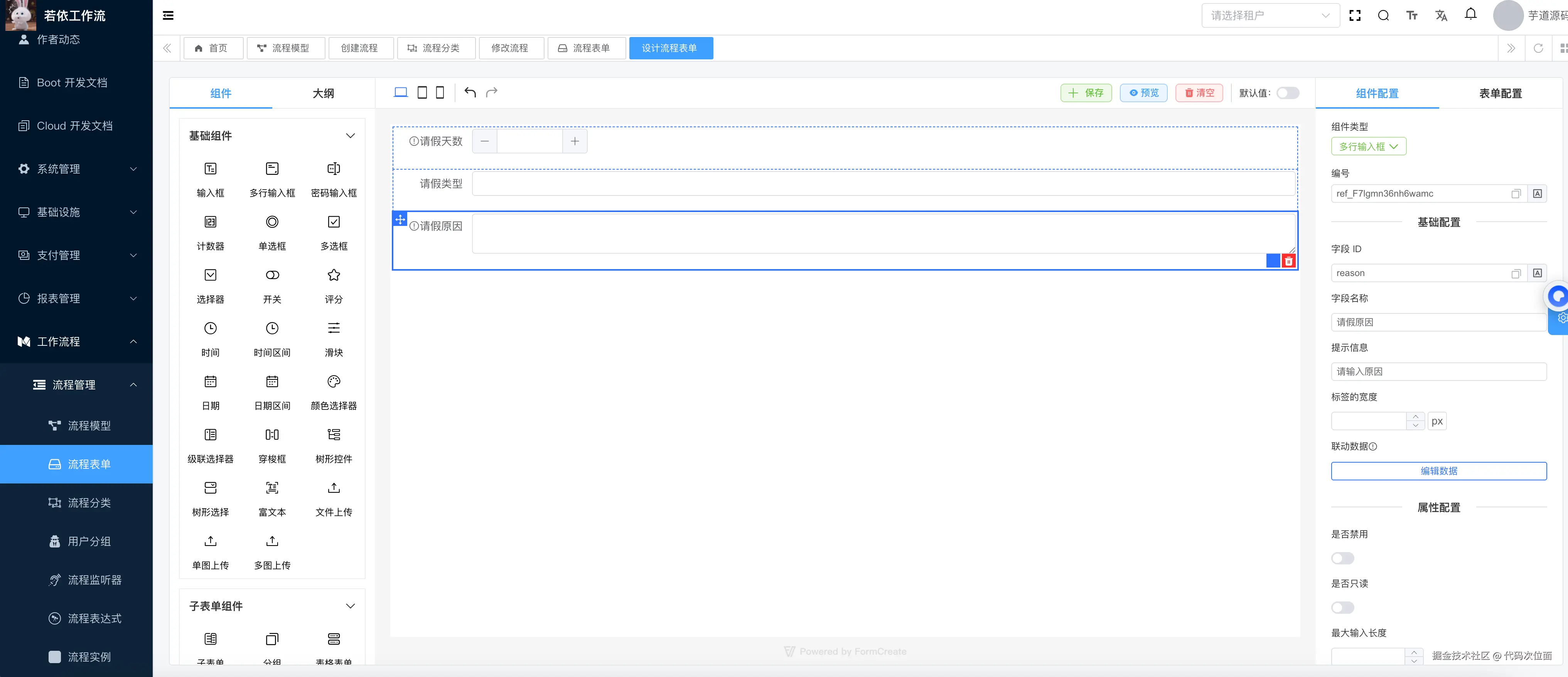 - 可以设置在线表单,并且在发起流程,以及审批节点绑定自定表单