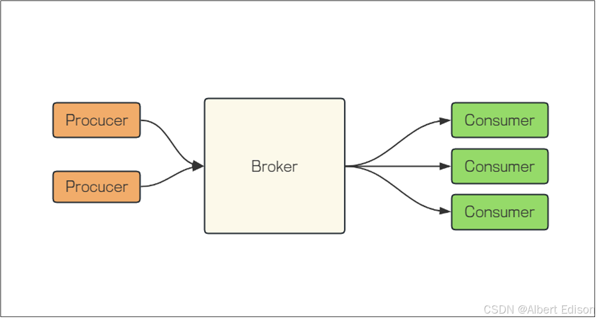 - Producer:生产者,是 RabbitMQ Server 的客户端,负责向 RabbitMQ 发送消息。