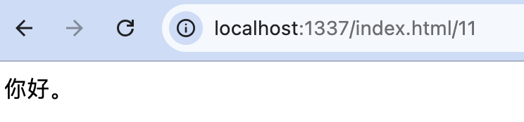 该正则表达式表示客户端指定的目标路径必须以数字开头。在浏览器的地址栏中输入"http://localhost:1337/1"地址或"http://localhost:1337/12"地址,浏览器窗口中显示"你好"文字。