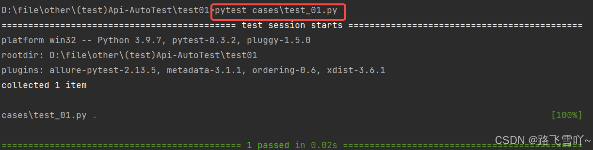 配置好 pytest.ini ⽂件后,命令⾏执⾏ pytest 命令即可,⽆需再额外指定其他参数。