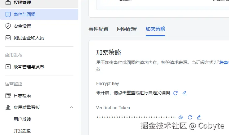 首先我们实现一个配置类来统一管理上述我们说到的 App ID 、App Secret 以及在配置事件订阅中讲到的加密策略设置的 Encrypt Key 、Verification Token。