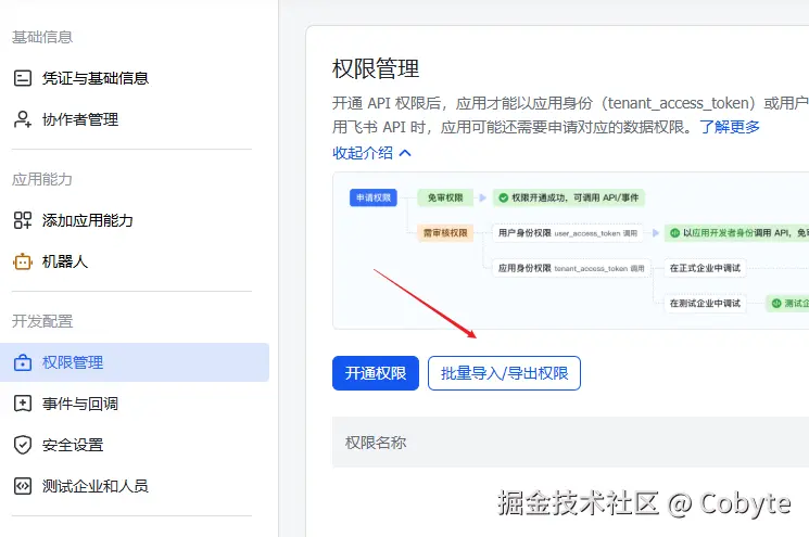 在权限管理 中点击批量导入/导出权限按钮