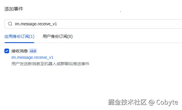 接着添加接收消息事件:im.message.receive_v1