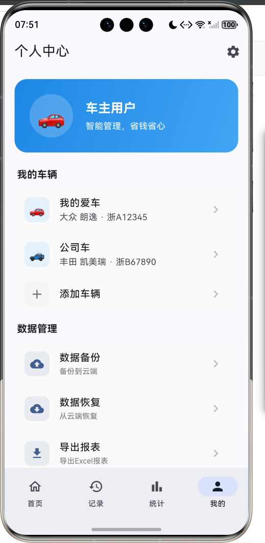 应用支持多车辆管理,可记录每次加油的里程、油量、金额、加油站等信息,自动计算百公里油耗,并通过图表直观展示油耗趋势和花费分布,帮助车主优化驾驶习惯,降低用车成本。