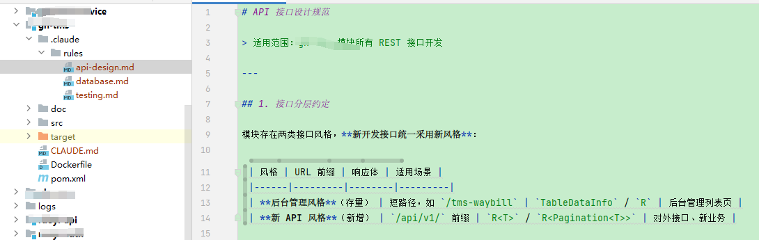 我这里明确要求AI 编写接口的时候需要参考我提前指定好的API编写规范文件,确保生成的接口与当前的接口规范是一致的