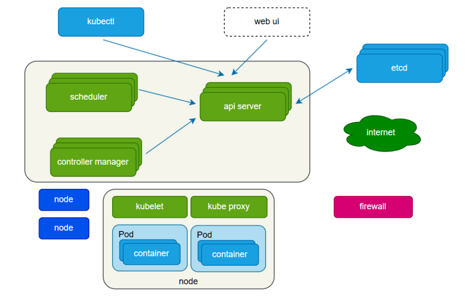 - kubelet:部署在所有节点(master + worker),负责管理本节点的 Pod 生命周期,与 API Server 通信,执行容器的启动、停止、重启等操作。